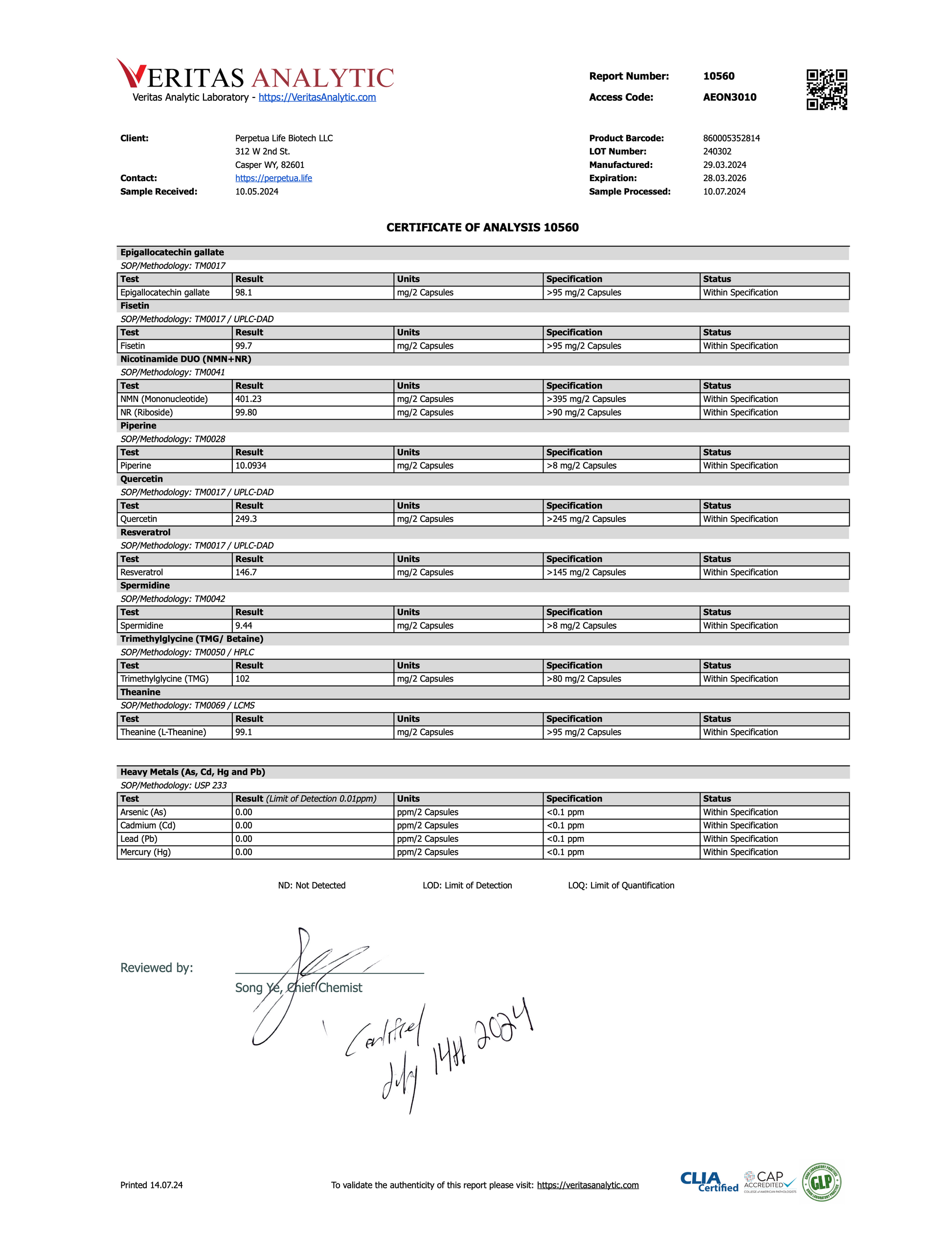 AEON is free of preservatives, additives, gluten, animal derived ingredients, and has 0 calories. It's made in the USA, and rigorously tested by 3rd party labs for both potency, AND heavy metals to ensure you receive a premium product each, and every time (latest rest).
